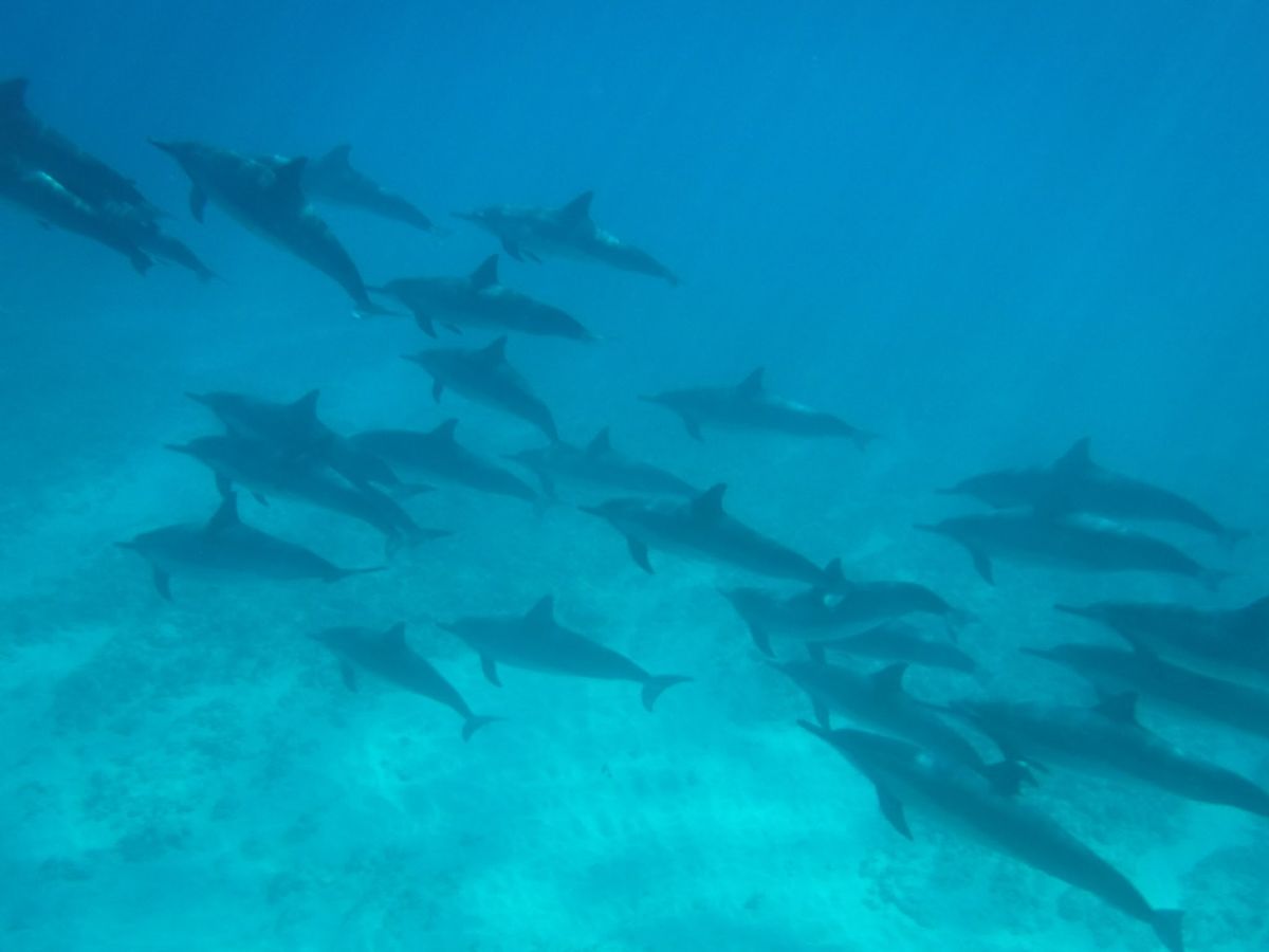 いざポイントについて潜ると、その瞬間水面のすぐ下に10頭以上の群れ!感動です。
