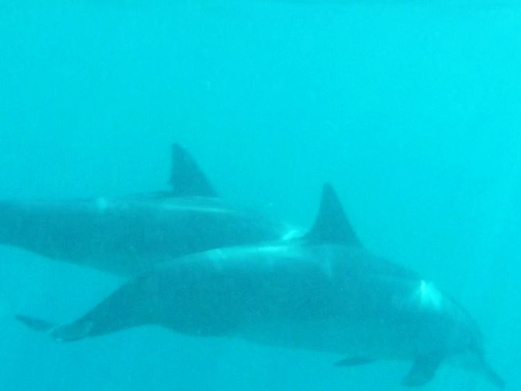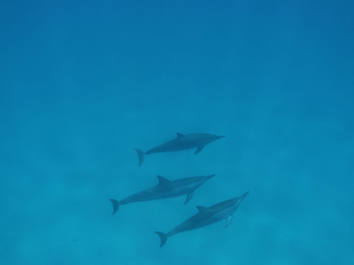 イルカがよくいるところに船を停めて、入水しインストラクターさんについていくと足元の下の下のほうにイルカが!!