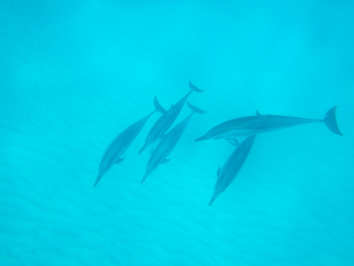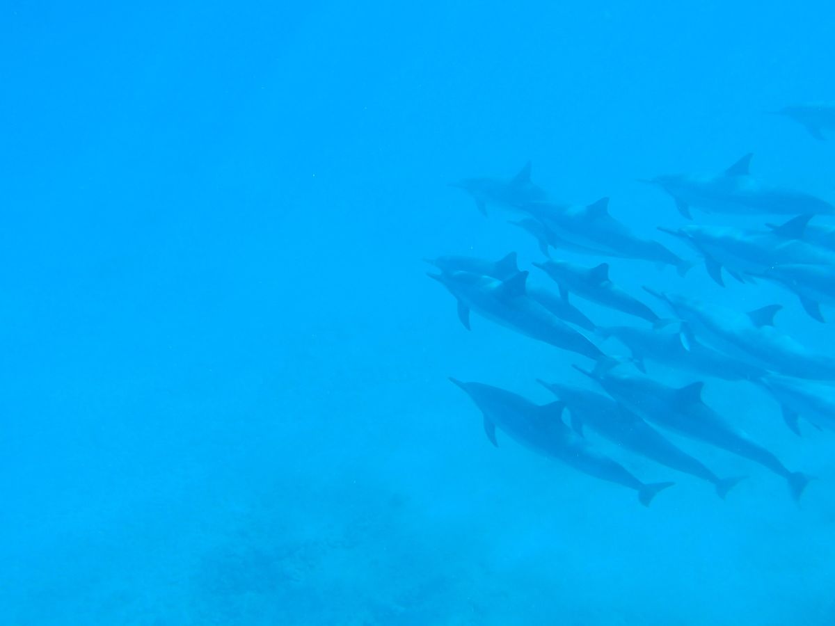 海があまり澄んでない日でしたが、それでもイルカの群れを見れ、シュノーケリングしていると間近にも現れて手を伸ばしたら届く位置でイルカと泳げて感激しました!!