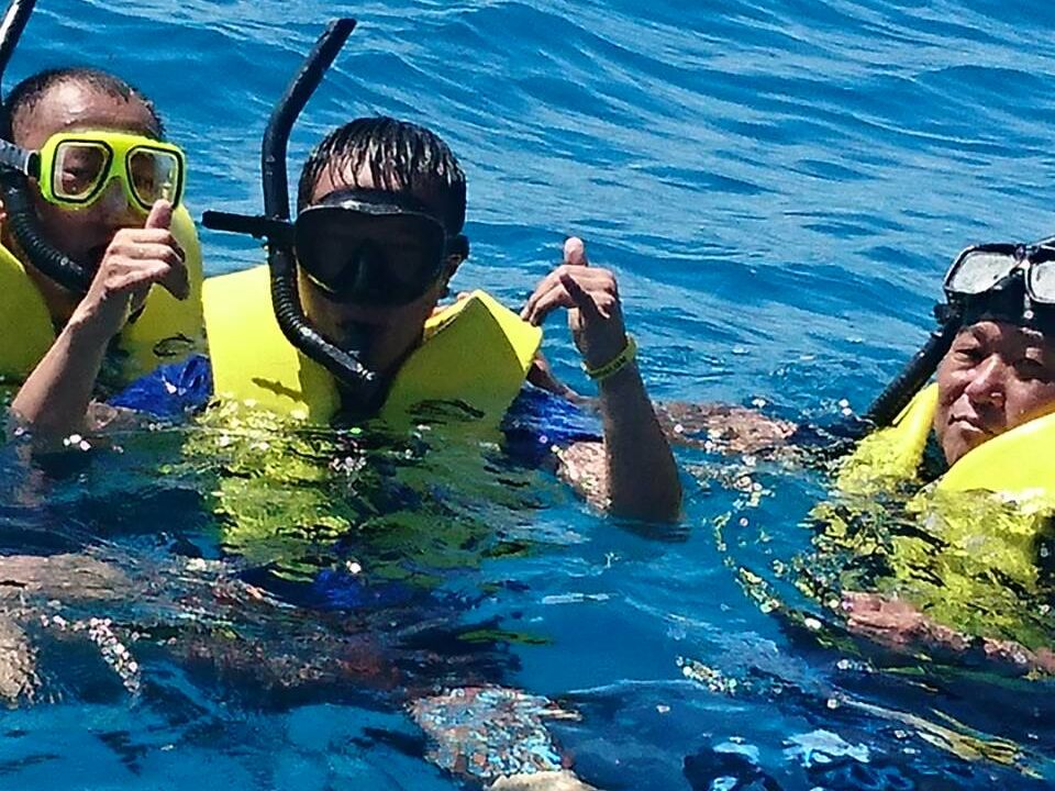 しっかりした救命胴衣を着けてのシュノーケリングなので、60代の母も初めての体験でしたが楽しめていました。