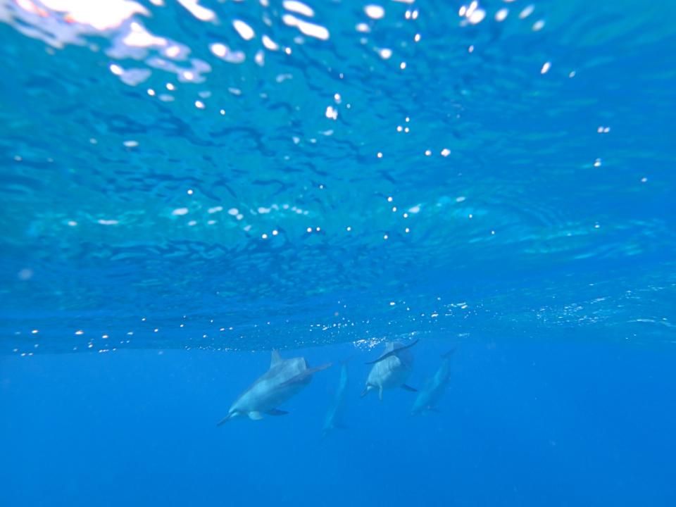 運よくイルカの群れを見つけ、一緒に泳ぐことが出来ました!