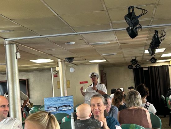 大型の船なので酔いにくい方だとは思いますが、クジラウォッチのために4階甲板の上まで出ると、高くなる分揺れの幅が増幅されるため、体感的にはかなり揺れる気がします。ご心配な方は酔い止めおすすめします。