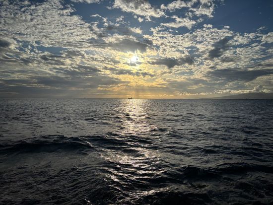 当日はあいにくの天気。雨が降ったり風が吹いたりとてもサンセットは望めない雰囲気の中の出港。予想通り少々波があり、船が揺れましたがあらかじめ酔い止めを服用していたので船酔いはありませんでした。