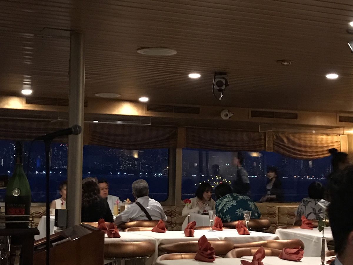 クルーズ自体は良かった!日本人が大半。ビュッフェの品数は少なめなのが少し残念。でも船から見る夜景はとてもきれいでした。参加してよかった!