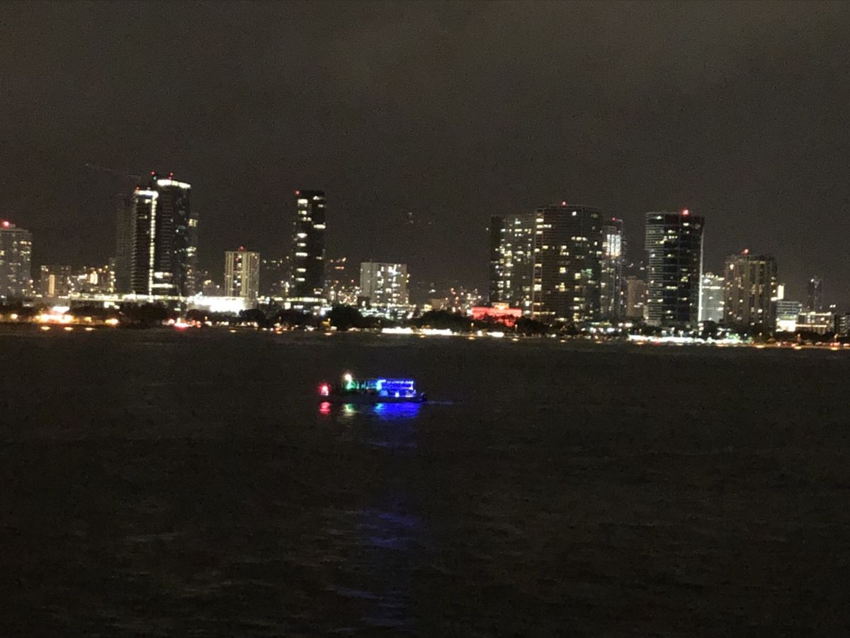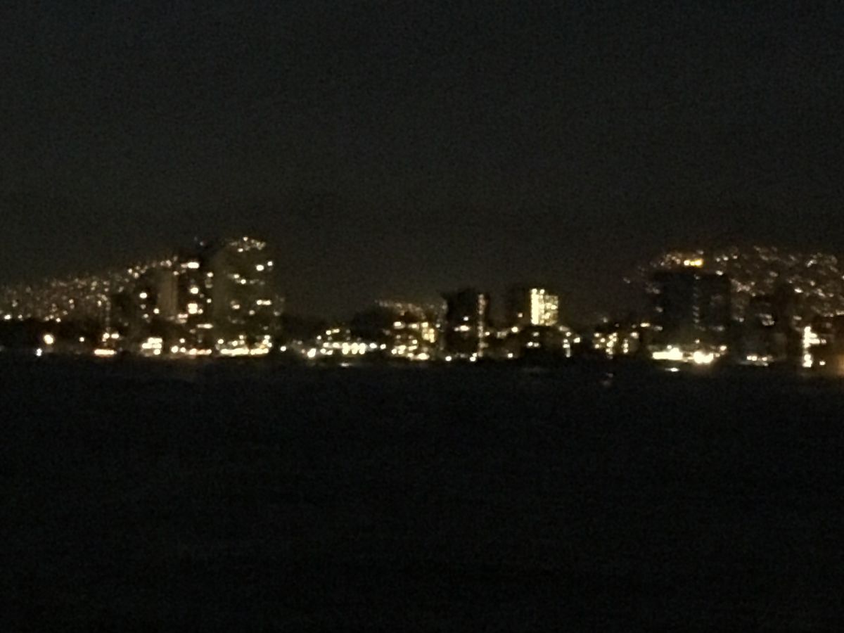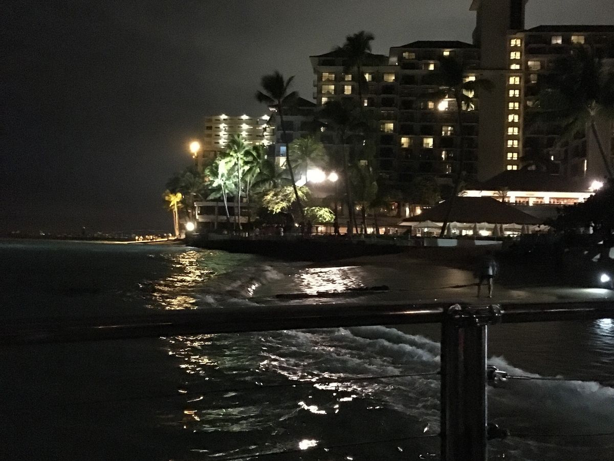そして、行きは明るかったけど帰りは完全に暗くなり、海から見るワイキキの浜の夜景はとてもきれいでした。