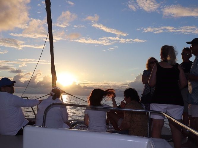 ディナー付きのクルージングと迷いましたが、ヨットのサンセットクルージング、最高でした!風を感じ、海を感じ、お客さん同士で写真を撮り、職場の仲間4家族(9名)での旅でしたが最高の締めくくりとなりました。