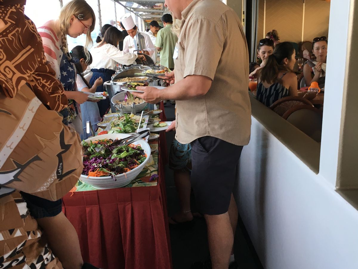 サンセットが目的でしたが天候悪く湾の外に出られませんでした。料理については期待はしていませんでしたが全く美味しく有りませんでした。サンセットディナークルージングでは無く舟の中で食事だけした感じです。