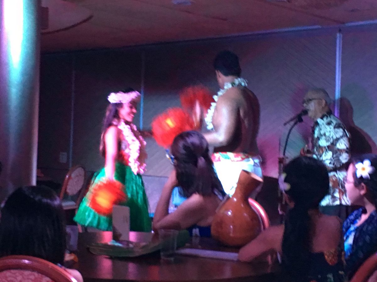 そうそう、ハワイダンスの間にお客さんも参加できるダンスができました。とっても楽しかったです。あれは、一緒に参加しないともったいないですよ、せっかくハワイまで来たんですからね!母(私)は、、フラダンスからみんなで参加できるダンスまでハッチャケて楽しんでいましたテヘッ(〃ω〃)