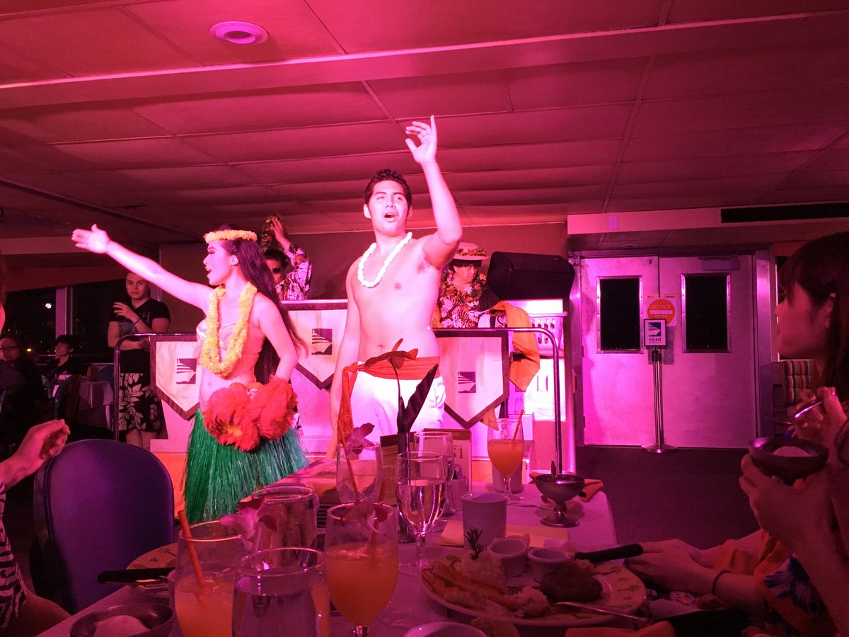 20人のグループで、1スターで参加しました。カニの食べ放題は男子にとても受けが良く、大変楽しめました。また食事中には生演奏や、本場のフラなど本当に素晴らしいショーがあり、日本人でも知っている曲を演奏していただいたりと、大満足です。ダンサーの人たちも気さくな方ばかりで、ハイタッチや写真撮影など、サービス精神も旺盛でした。またぜひ利用したいと思います。