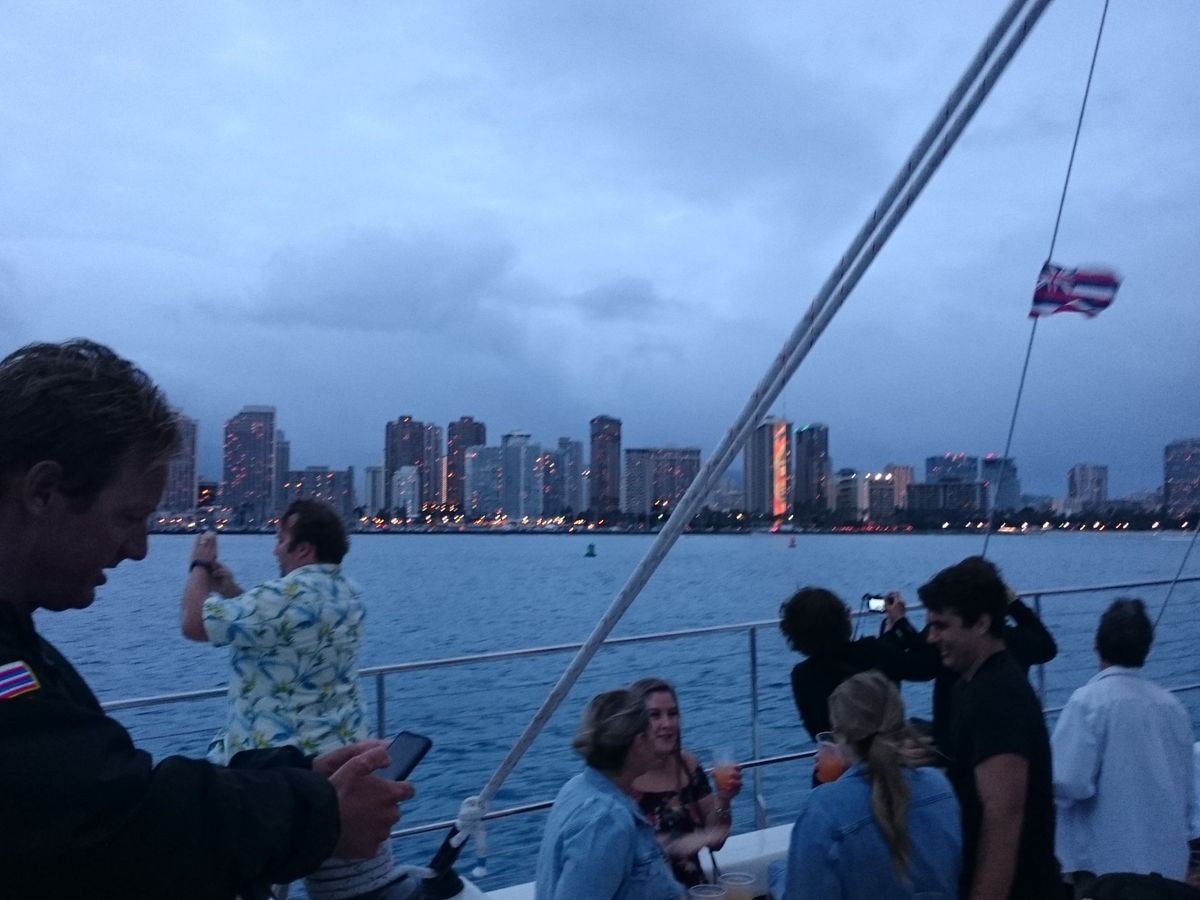 沖から見るワイキキの夜景や雰囲気にのせられ、マイタイも4杯頂き最高に気持ちよかったです。