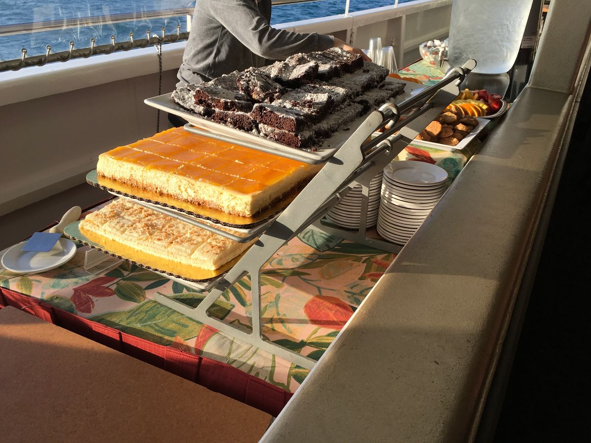 食事は小さなビュッフェスタイルのセレクションで、食べ放題でしたが、素晴らしかったです!オープンバーはありませんが、購入時に1杯の無料ドリンクが含まれています。バーテンダーのクリスは本当にクールな人でした。おそらくボートの中で最も人気のある人です。理由がよくわからないのですが(笑)。
