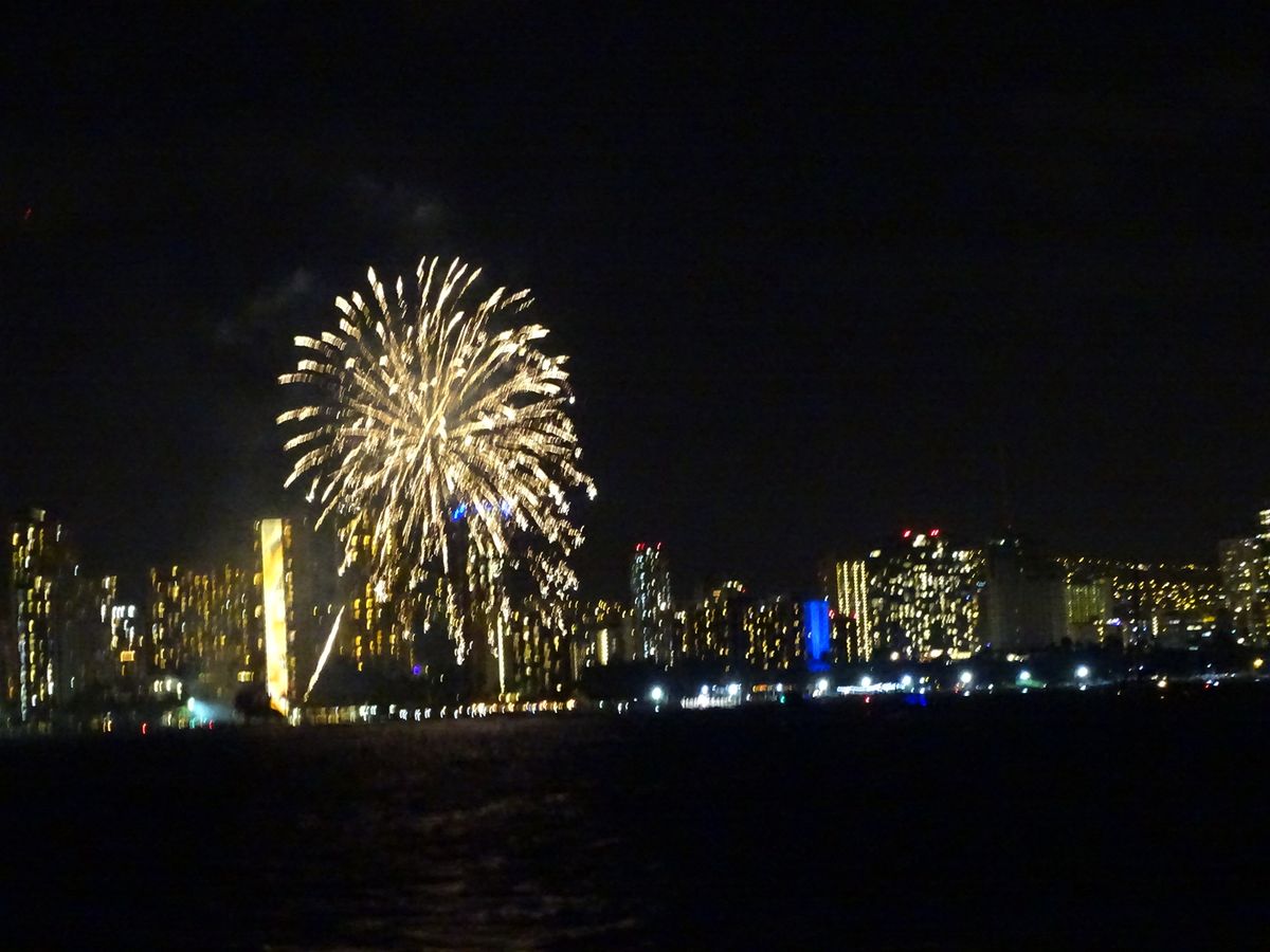 このクルーズは金曜日のみのため、出発前に自宅から予約しました。これにより、事前に楽しみにすることができましたが、後で知ったところによると、数日前にスポットを確保できた人もいたようです。この価格で、これは絶対におすすめです!ワイキキのホテルが輝く中、海から花火を見ることを永遠に忘れません。