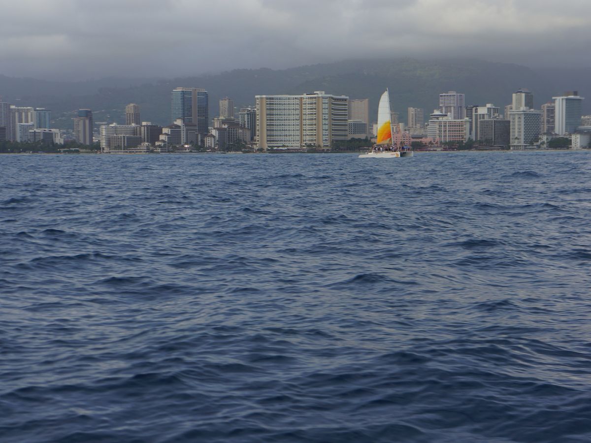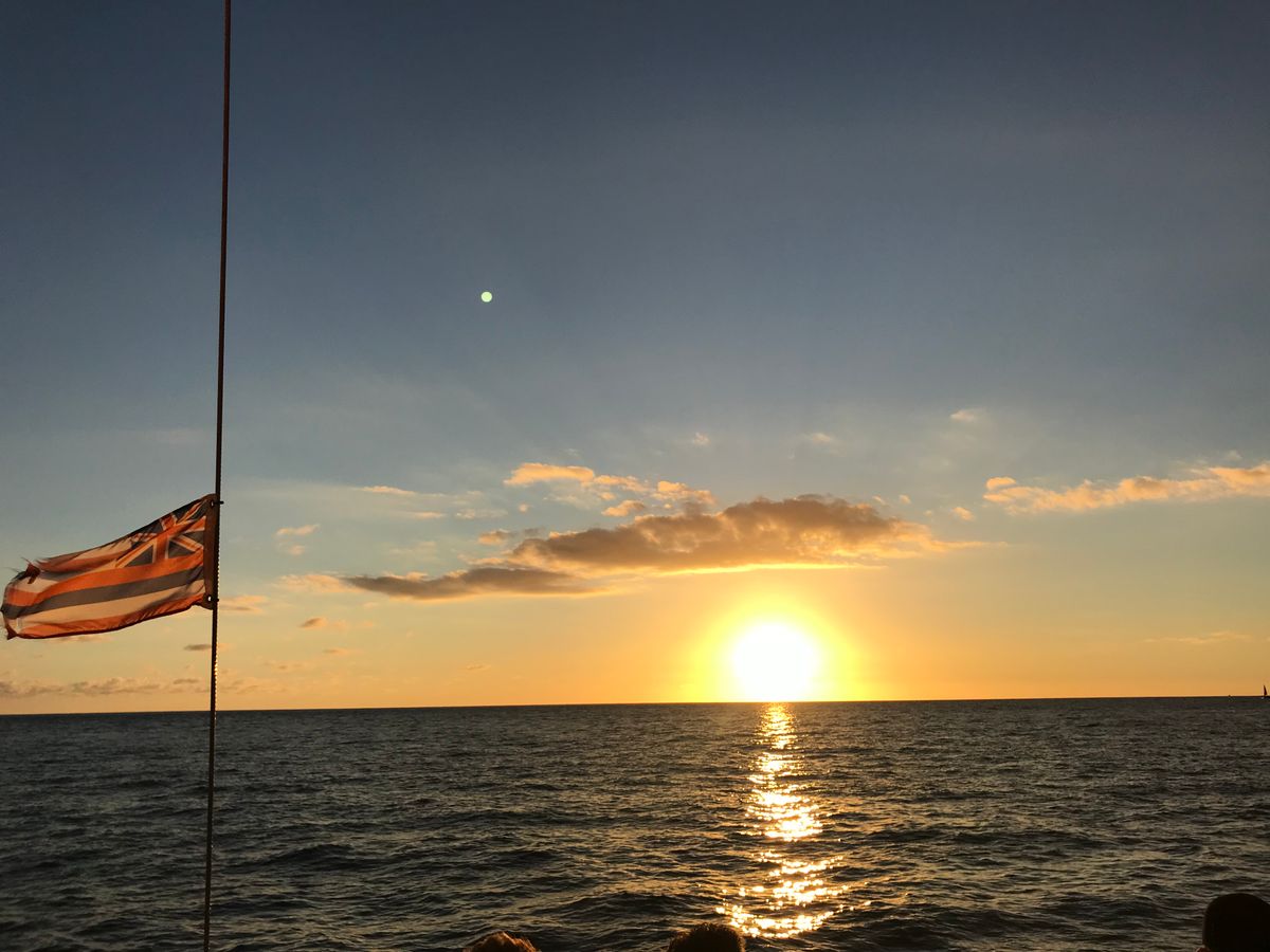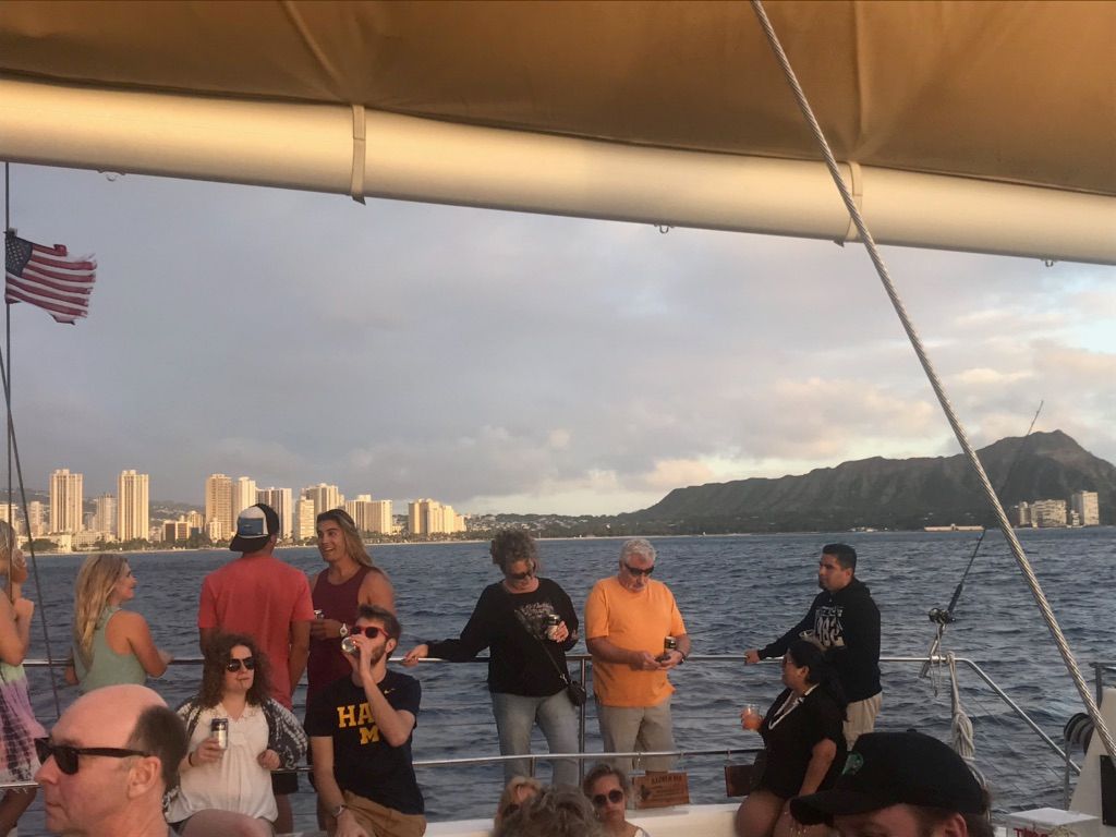 初めてのサンセットカタマラン。船上から見るワイキキ、ダイヤモンドヘッド、水平線。どれも最高でした!偶然にもクジラにも出会えて他の方たちとあっちだこっちだと盛り上がりました。サンセットは最高にキレイでした。 ただ、船に乗る前に撮ってくれた写真が$24はちと高いかな。。買いませんでした。