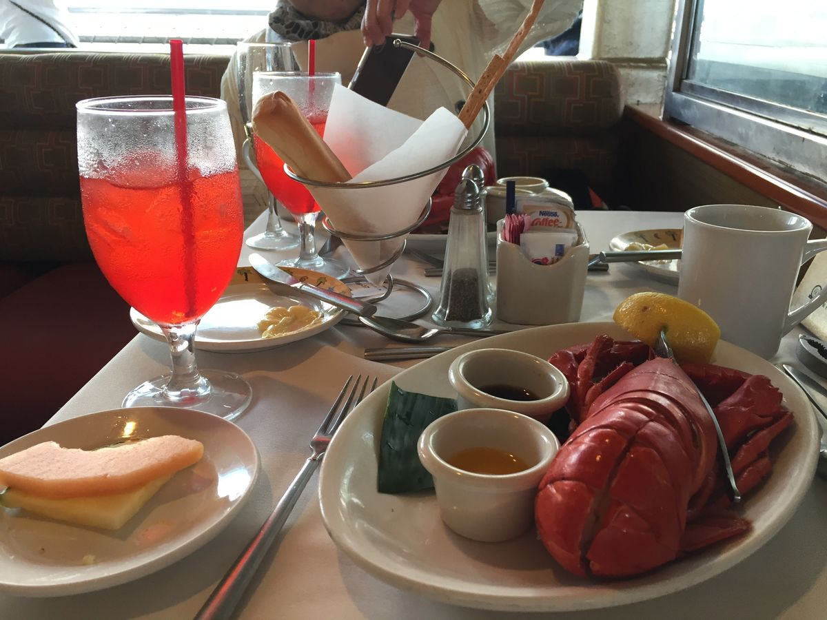 ディナーはボリュームたっぷりで、ロブスターやステーキなど、味も満足いくものでした。