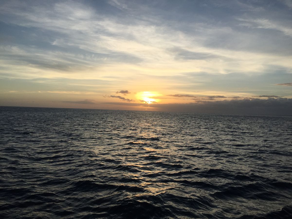 あらかじめサンセットの時刻がアナウンスされるので、その時間にはデッキに出て気持ちよく過ごせます。もちろんサンセットは逆光ですが(笑)目に焼き付けて・・