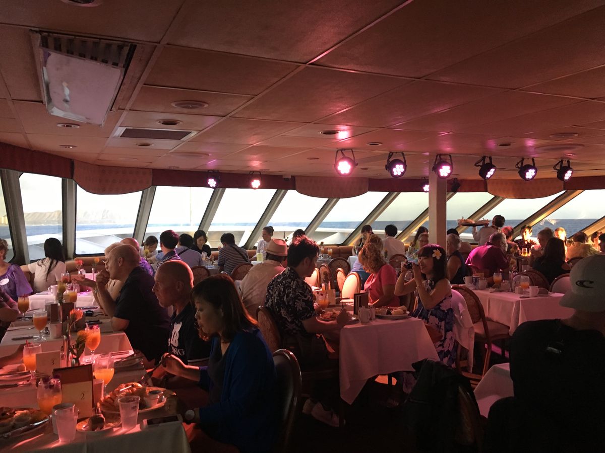 食べ物が美味しかった。催しモノのダンスも楽しくていい思い出になりました。クルージングの後のホノルルの夜景の景色の最高に良かったです。