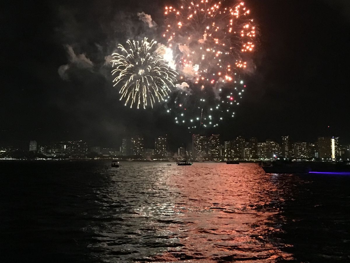 花火自他は大したものではないとのレビューもありましたが、ハワイで見るというフィルターを考えれば、日本の大きな花火大会にも引けをとらないと思いました。