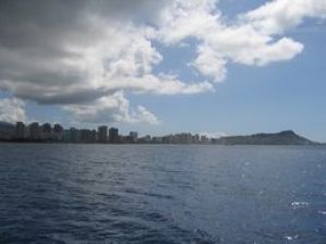 2時間のクルーズでワイキキ沖を何回か往復するのですが、沖から見るホテル群やダイヤモンドヘッドの眺めもすばらしく、二人とも大満足でした。