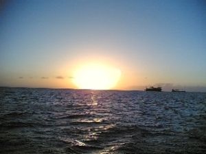 日が沈んでくると、海面は徐々にオレンジ色に輝き