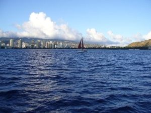 航海のコースはワイキキビーチの前を通りダイアモンドヘッドの沖合いまで行き、