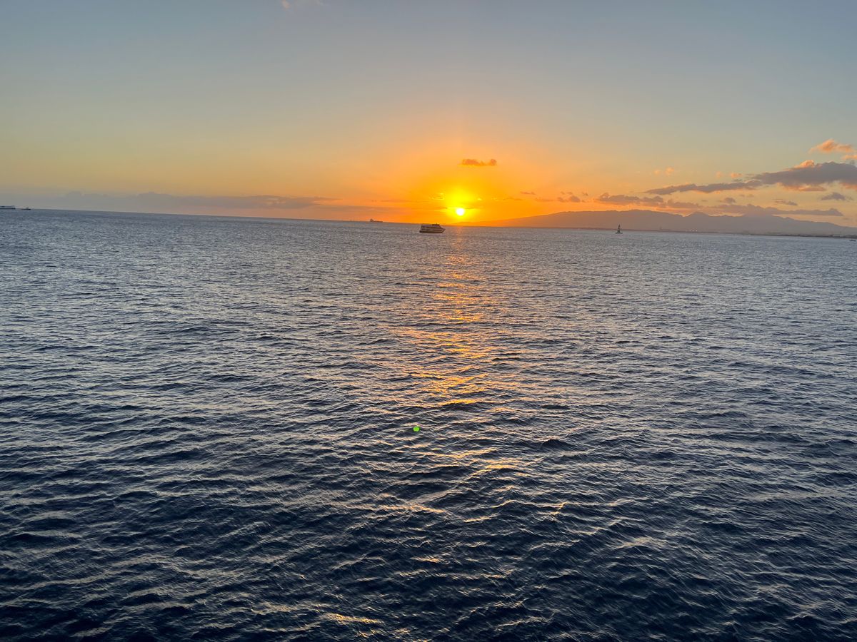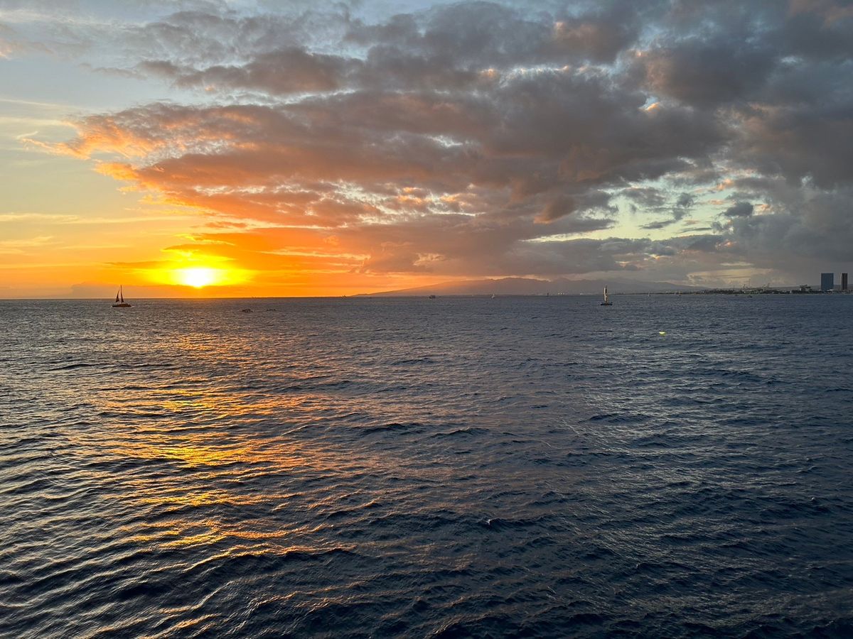 ただ、ちょうどワイキキの花火を船上から見ることができたのですが、日本の花火を見慣れている我々にとっては、しょぼさ感はぬぐえないなとも、感じたかな・・・。