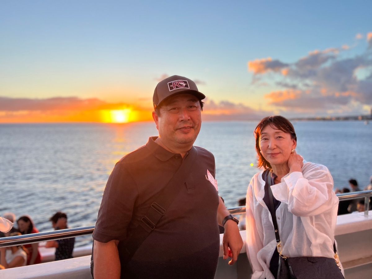 スターオブホノルル号サンセットデイナークルーズをご夫婦でご利用頂き有難うございます。初めてのクルーズにハワイの素敵なサンセット、お食事、そして、エンターテインメント等々をお楽しみ頂けました様で大変嬉しく思いますハワイでの素敵な思い出作りのお手伝いができたことをスタッフ一同光栄に思っております。次回もハワイでお待ちしております。