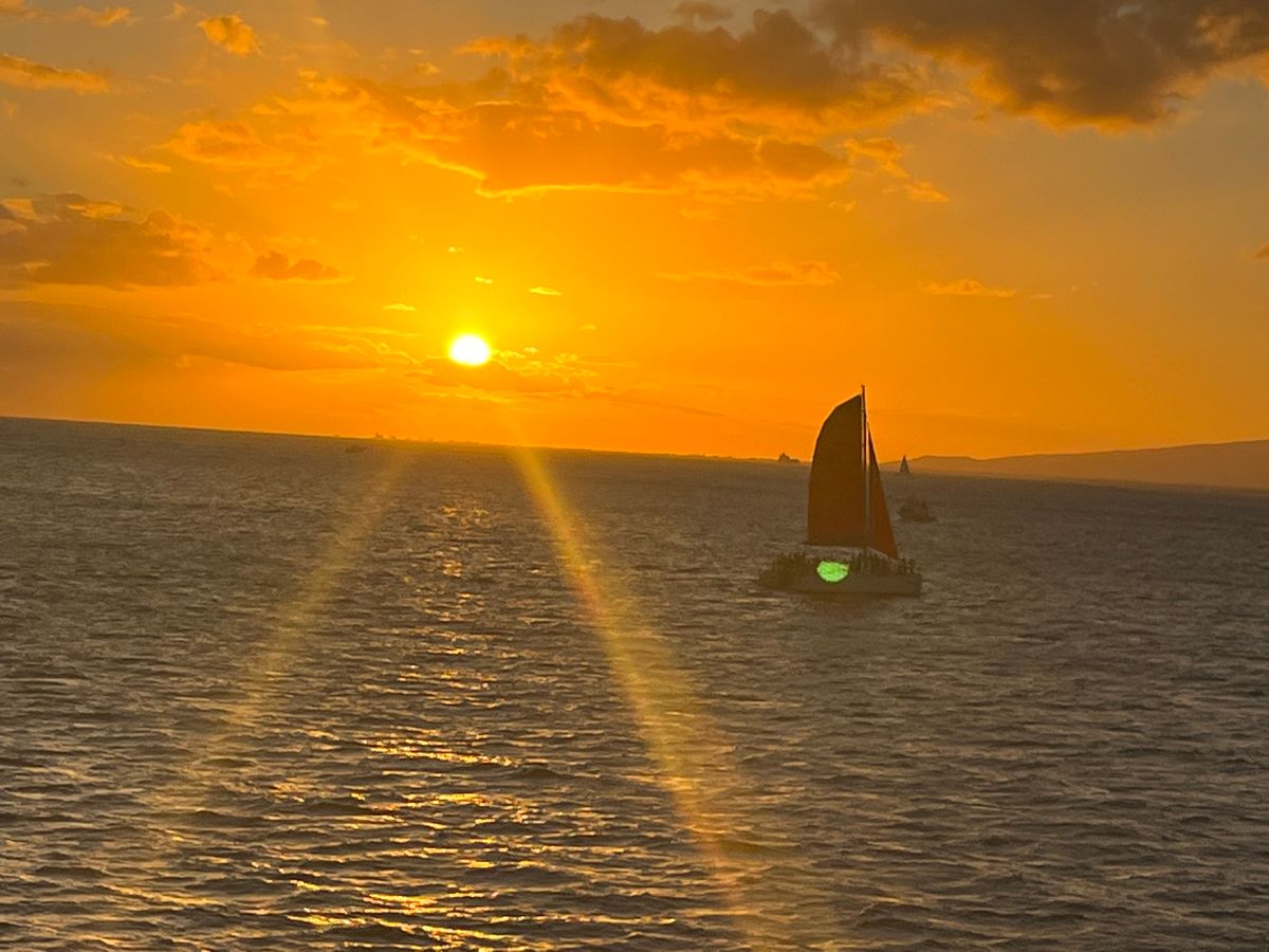 オアフ島は3回目です。夕日を見るなら浜辺のレストランで食事をしながら、飲みながら見れば良いと思っていましたが、一度は船から夕日を見るのもいいかもと思い体験しました。