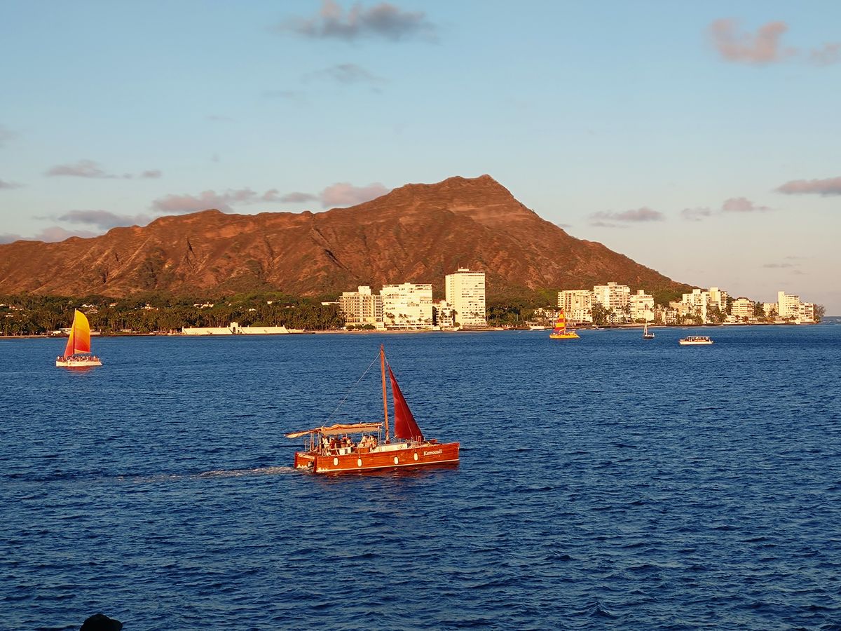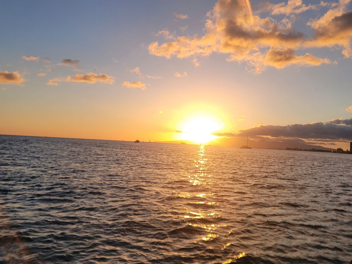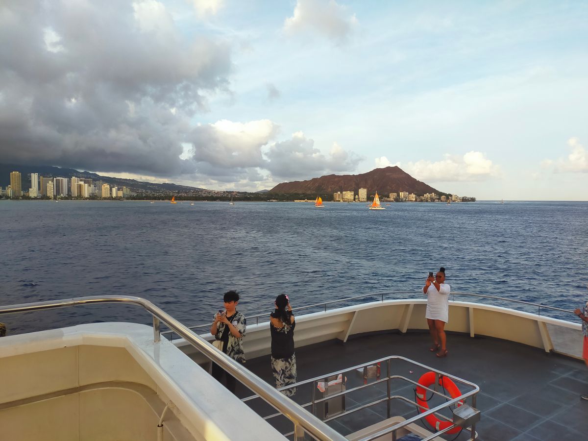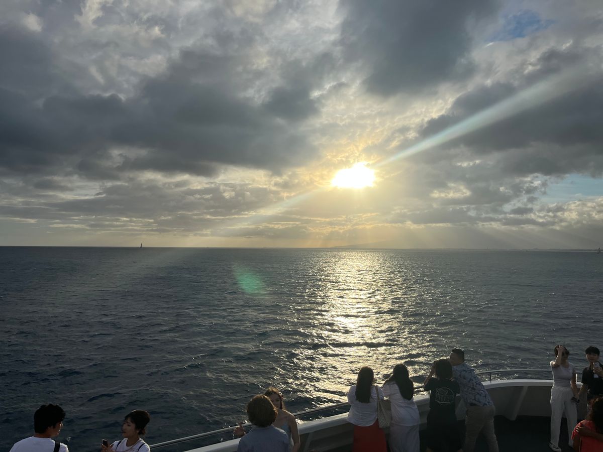 甲板で風を感じながらのサンセットはとても気持ちよく、海上から見るダイヤモンドヘッドやワイキキの街並みも素晴らしかったです。