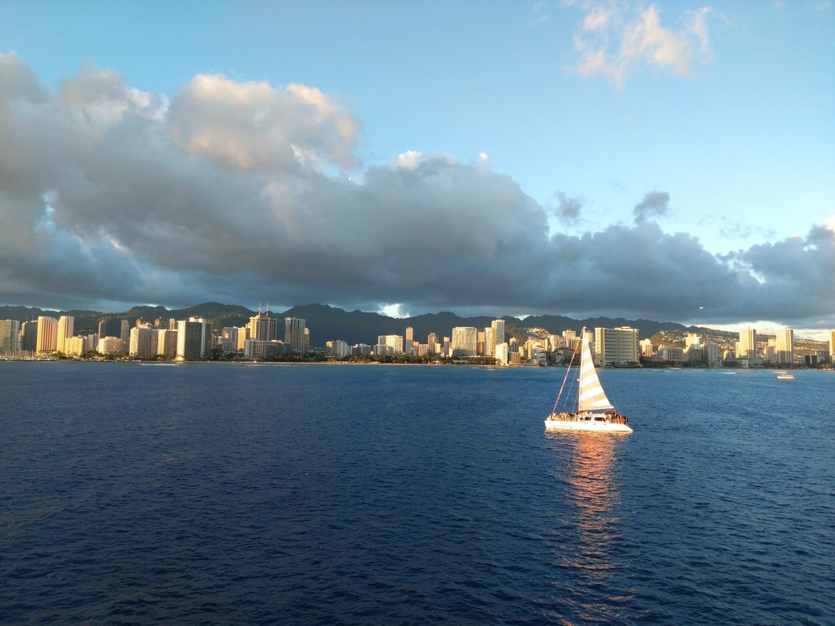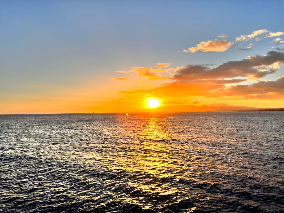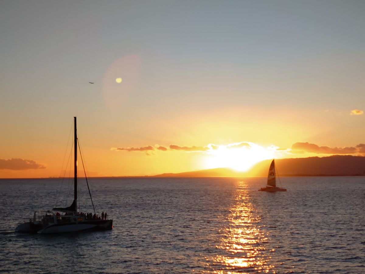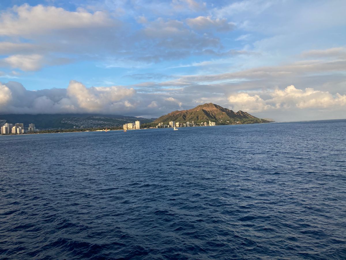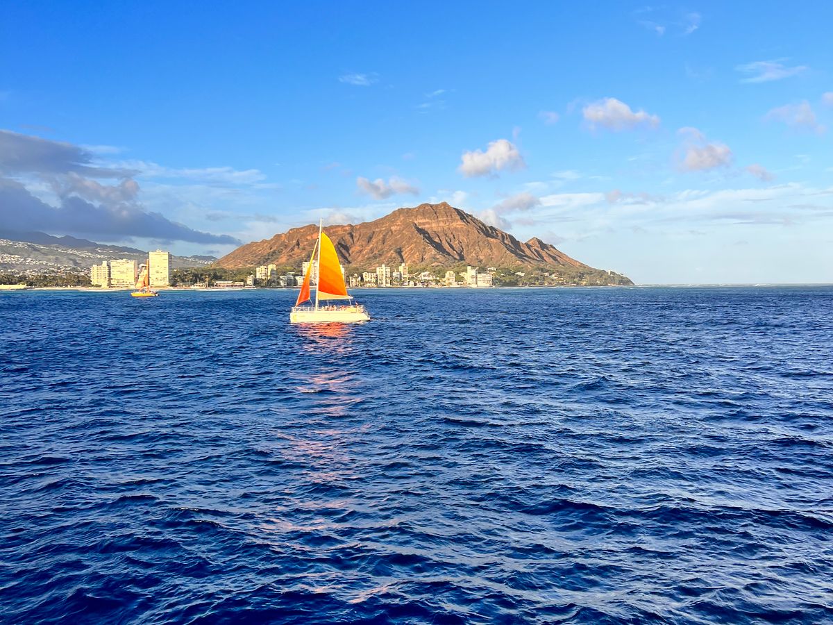 甲板で風を感じながらのサンセットはとても気持ちよく、海上から見るダイヤモンドヘッドやワイキキの街並みも素晴らしかったです。