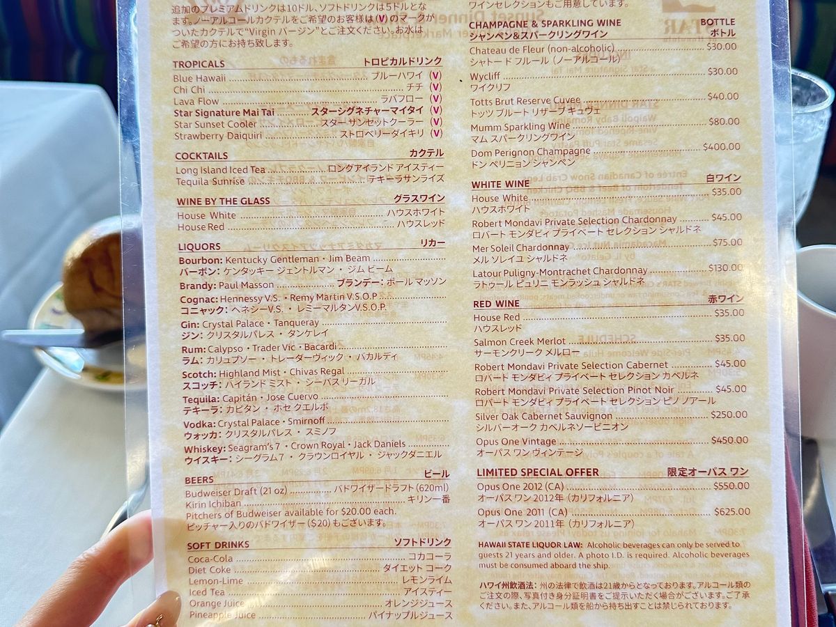 ただ、日本語での説明はメニューに記載があった程度で、船内のMCは全て英語だったので、語学力がある程度ある方か、その辺りが気にならない方は大丈夫だと思います。