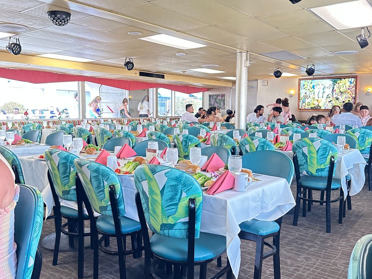 思ったより席がぎゅうぎゅうでびっくりしましたが、生ライブもありあっという間の時間でした。出航する前にメイン料理まで出てきたのでお腹を空かせて行ったほうがいいです!ナッツアレルギーだと事前の予約時と当日の2回伝えたのですが、食後のマカダミアナッツジェラートはそのまま出てきたので、アレルギーをお持ちの方はお気をつけください。金曜日に乗船し、天候にも恵まれたので花火も見ることができました。日本語は通じませんが、みんなで踊るYMCAも楽しかったです。当日入籍した方も乗船してて最後はほっこり。とても良い旅の思い出になりました!