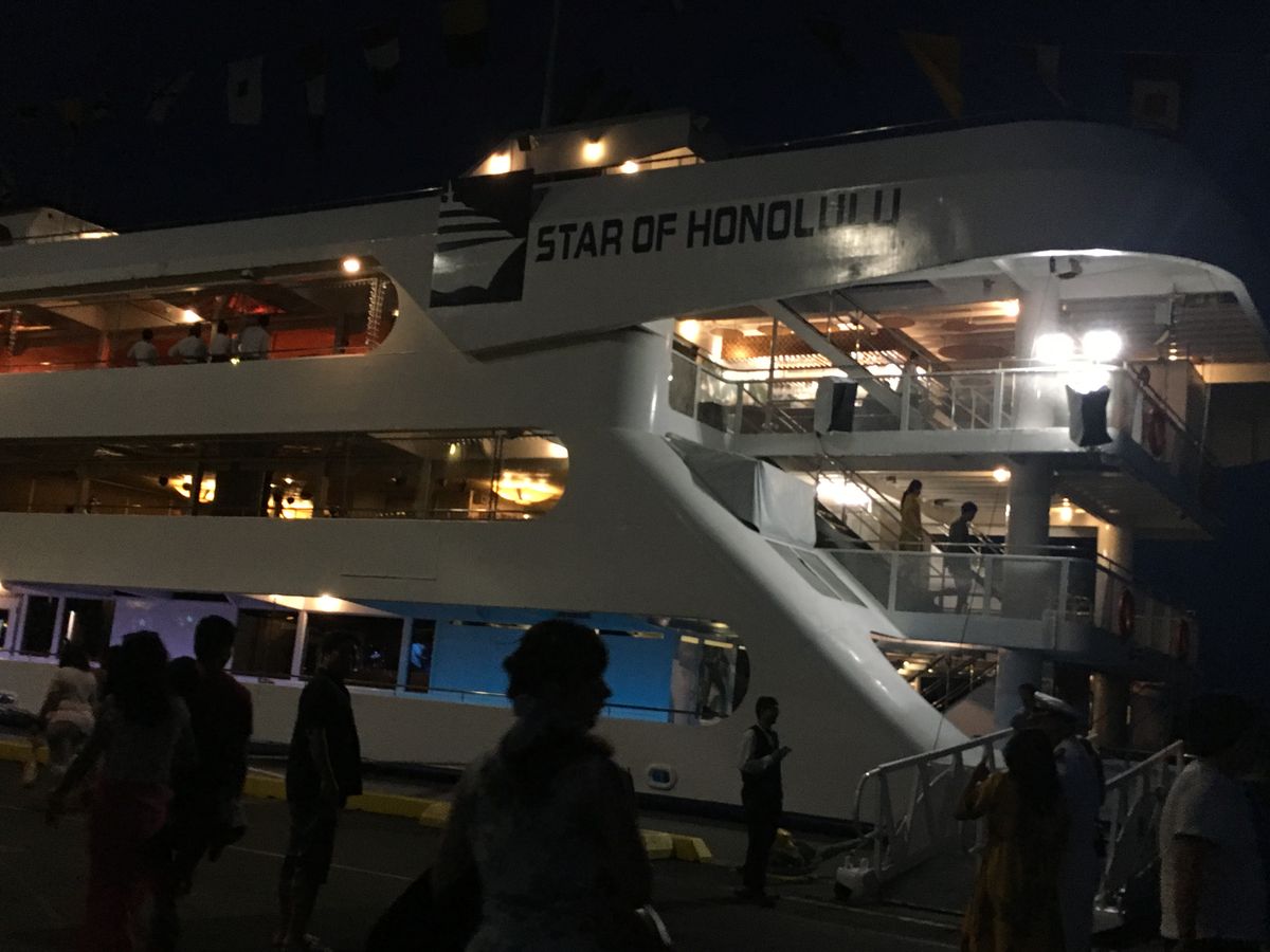 スターオブホノルル号のサンセットディナークルーズは色んなスターを体験しましたが、コースだとお腹が一杯になってしまうので、このパシフィックスターが一番のお気に入りです。