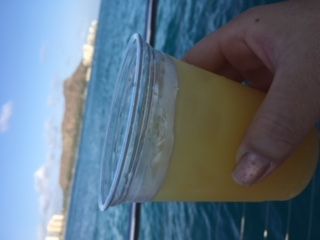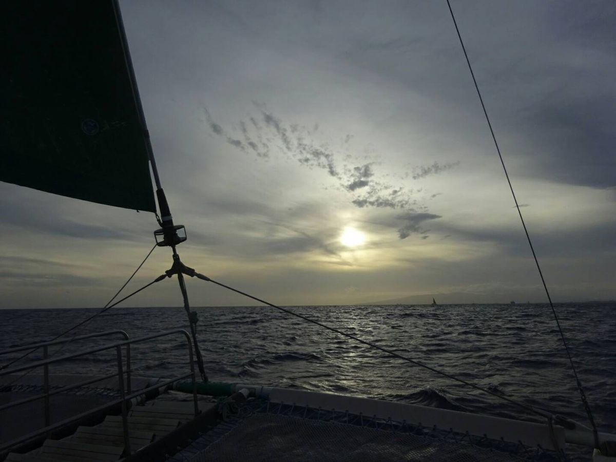 風が強く波も高かったけど、マイタイを頂きながら気持ちいいセーリングでした。前回はイルカが併走したので今回も期待してたのですが、今回は現れてくれず残念! また参加したいです。