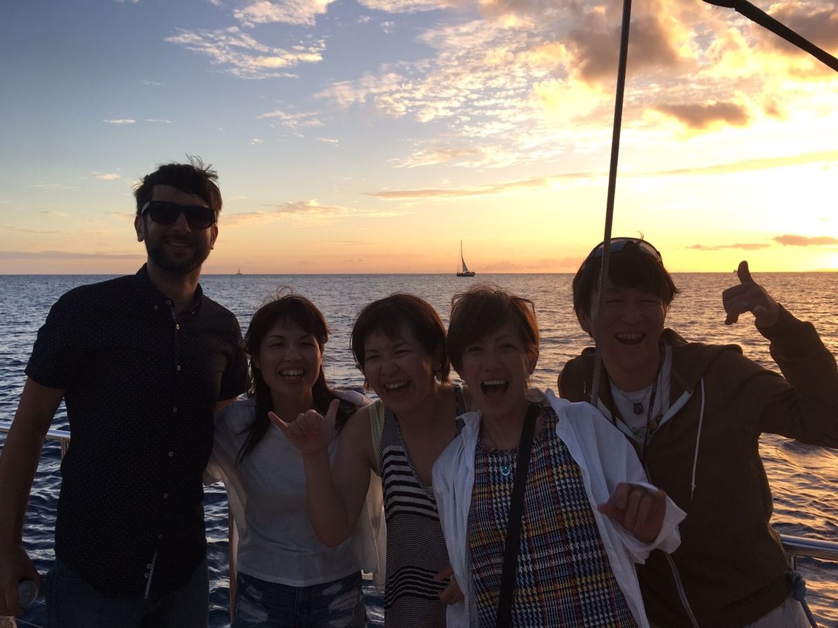 今回で3回目の【サンセットセーリング マイタイ・カタマラン号】でしたが、初めて自分達以外の日本人が参加しているのを見ました。