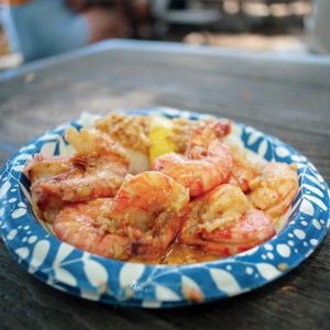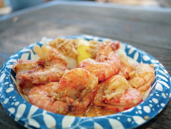 ガーリックシュリンプを食べるのに、ビニール手袋を持っていくといいです。
