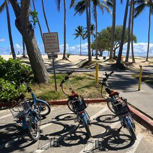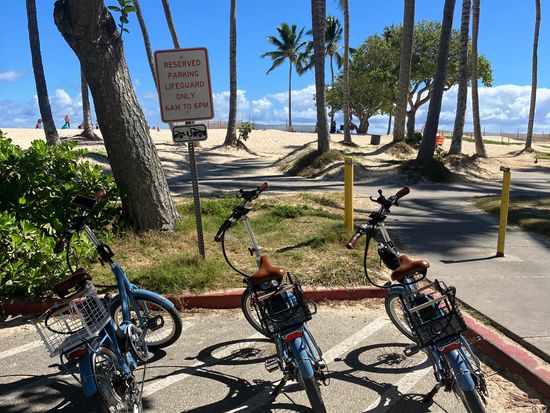 カイルアビーチに向かって景色の良い自転車専用レーンを爽快に走れて楽しかったです。日本の電動自転車と違ってペダルだけでなく左の親指のところのボタンでも電動だけで楽に走れました。カイルアビーチ、ラニカイビーチの美しさに感動しました!方向音痴の私でもアロホノの方の場所の説明がわかりやすくて、いざというときのためのライン交換もしてもらえて、ラインは使わないで済みましたが、不安が減り助かりました。