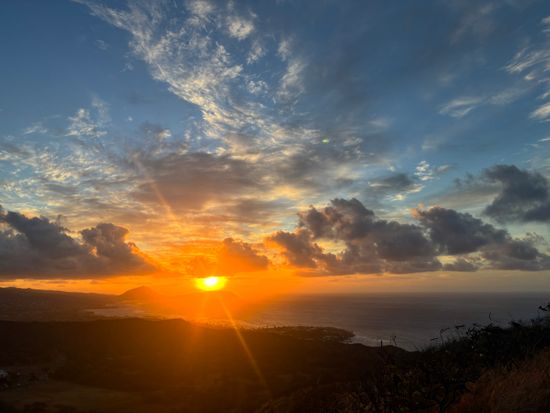 登頂出来た達成感と、日の出とワイキキの海がなんとも言えない美しさで感動ものです。