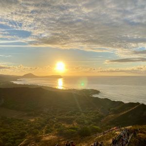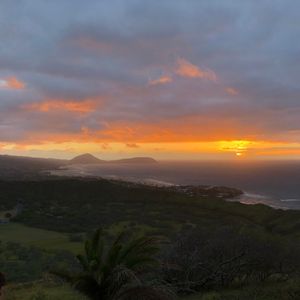 8月の参加なので日の出は登山途中になるのがどうなのかと思っていましたが山間から上ってくる太陽と日の光を受けて山が焼けて輝く姿が美しかったです。丁度前日が満月のタイミングだったので空に浮かぶ月も綺麗でした。高校生の息子と2人で参加したので登る速度について行くのが大変で、登頂直前には足がプルプルして母さんは大変でした。階段を登る時につい手すりを触ってしまったら赤錆だらけで手が真っ赤に鉄臭くなってしまって大変でした。下山後のトイレで必死に洗っても鉄臭さがなかなか取れずに苦労したのでお気をつけください。ファーマーズマーケットの時間が足りるのかと思いましたが十分でした。バインミー美味しくて帰国後Uberで同じものを見つけた時はつい嬉しくなって注文しましたがハワイの方が味が濃くてお肉が柔らかかったあです。東京は日本向けに少しあっさりだったのかもしれません。楽しい思い出をありがとうございました。