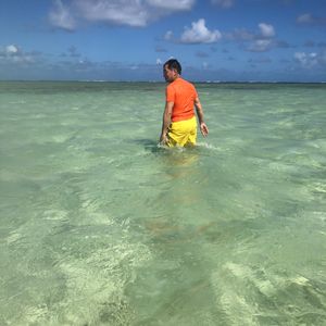サンドバーでは完全に砂の上に立てるつもりでいましたが、この時期はそこまで潮が引かないらしく、一番浅いところでも膝下くらいまで水に浸かる状態でした。