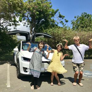 まずはピックアップ場所にアメリカの超高級車のテスラでお迎えが!