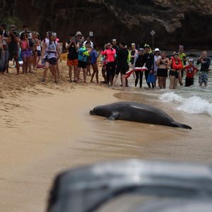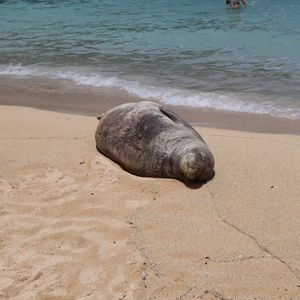ハナウマ湾では、運良く野生のアザラシに遭遇。