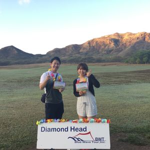 早朝5時出発でダイヤモンド登山しました。11月という事でそんなに汗を流す事も無く、往復1時間で登山終了しました。体重増加、運動不足で心配でしたが、親子共々、問題なく楽しく登山できました。ちょうど山頂に居る時に日の出が見れてラッキーでした。その後はKCCファーマーズマーケットへ。かなり賑わっていましたが、すんなりとお目当品は購入できました。アワビ、ジンジャーエール、甘エビの唐揚げ、ピザ、はちみつ、アヒボウル、どれも美味しくて大満足!早い時間に帰ってこれるので、その後もゆっくり1日を過ごす事が出来るので、このツアーはオススメですよ!また次回も申し込む予定です。