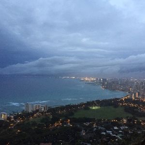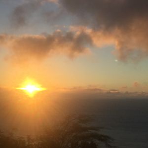 数日後、違うオプショナルツアーのガイドさんから私たちが日の出ツアーに登った当日、ダイヤモンドヘッドでがけ崩れが起き、入場中止になったそうで、KCCの屋台のテントも突風で吹き飛ばされて危険だからと中止になったそうです。よく生きて帰ってこれたね、と驚かれました。スコールのような雨はハワイはよくありますが、長年ワイキキ在住のガイドさんもあれ程酷い天候だった日は初めてだと言っていました。そんな日に日の出ツアーの予約を入れていたわけですから、本当に一生の思い出となりました。