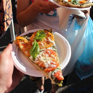 ファーマーズマーケットは有名なピザや瓶入りのジュース等飲みました。美味しかったですが安くはありません。持ち帰ってホテルで食べることはできない雰囲気でした。試食をしてから買うことが出来るものが多いのでその点は安心して買えます。日本語もある程度通じます。