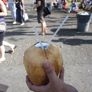 朝の時間にダイヤモンドヘッドと土曜日のみ開催のファーマーズマーケットに行けるのが魅力。ファーマーズマーケットではタロイモパンのチキンバーガー(タロイモの甘みがとてもおいしい!)やグリーントマトのフライ、ヤシの実のジュース等々堪能しました。