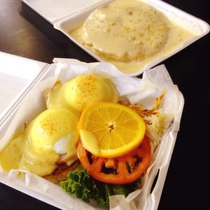事前にヤスさんがお店に注文してくれていたので、並ばずに商品を受け取ることが出来ました。評判のパンケーキはもちろん、ヤスさんオススメのシーフードオムレツは絶品でした!