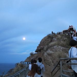 今回、このツアーに参加しました、最初はハイキング感覚で登り始めましたが中間地点から険しい上り坂、そして最終は急な階段の連続おおよそ30分で頂上付近に大勢の人たちが今か今かと日の出の時間を待っていました、太陽が昇り始め大勢の人たちが歓声を上げていました