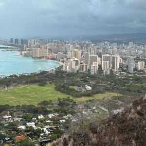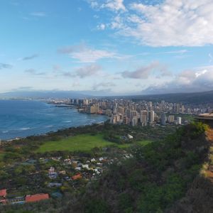 ダイアモンドヘッドから見るワイキキの街並み、青い海は最高に素晴らしいです