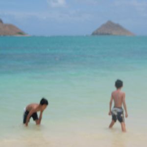 いつもワイキキのビーチで満足して遊んでいましたが、「全米ナンバー1のビーチ」というカイルアにいてみようという話になり、あまりに期待しないでいきました。しかし、着いたとたん、その海の青さのとりこになり、もう大感激。風が強いと聞いていましたが、12月にいったのですが、風はほとんどなく穏やかな海でした。「もうずっとここに住みたい」とまで思いました。毎年絶対にカイルアに来ようと家族全員で決めました。
