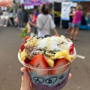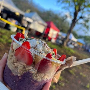 天気がよくなかったので、日の出は綺麗に見えませんでした。駐車場待ちが短く暗いのでやはりツアーは安心できます。KCCマーケットはアサイボール、ガーリックシュリンプ、フランクフルトなど楽しめました。